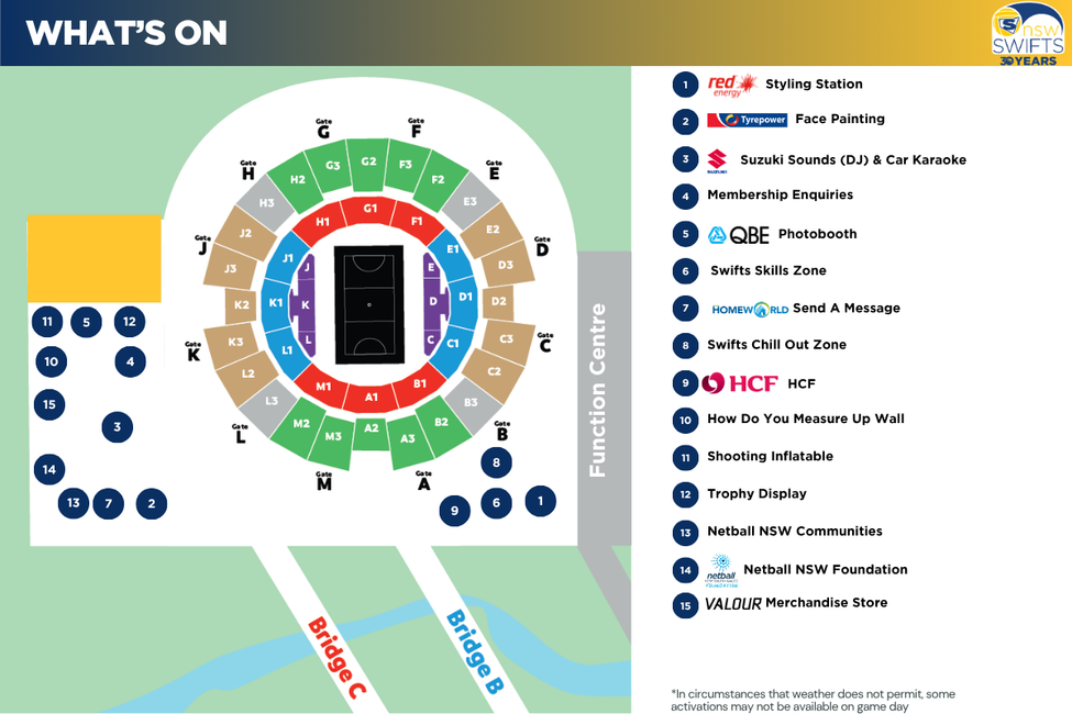 - QBE Photobooth (make sure to collect your Swifts Whoop Towel)