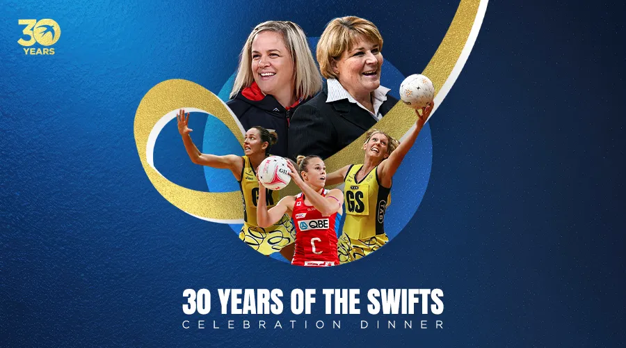 Hosted by Sue Gaudion, the 30 Years of the Swifts Celebration Dinner will bring together Swifts stars and legends of the past and present for a night to remember.