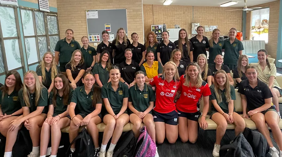 NSW Swifts stars Sharni Lambden and Tayla Fraser joined Netball NSW CEO Tracey Scott, Board Members, and senior executives for the two-day event, which included school visits, a community meet-and-greet, a Youth Ambassador leadership program, and the Beyond the Court development workshops.